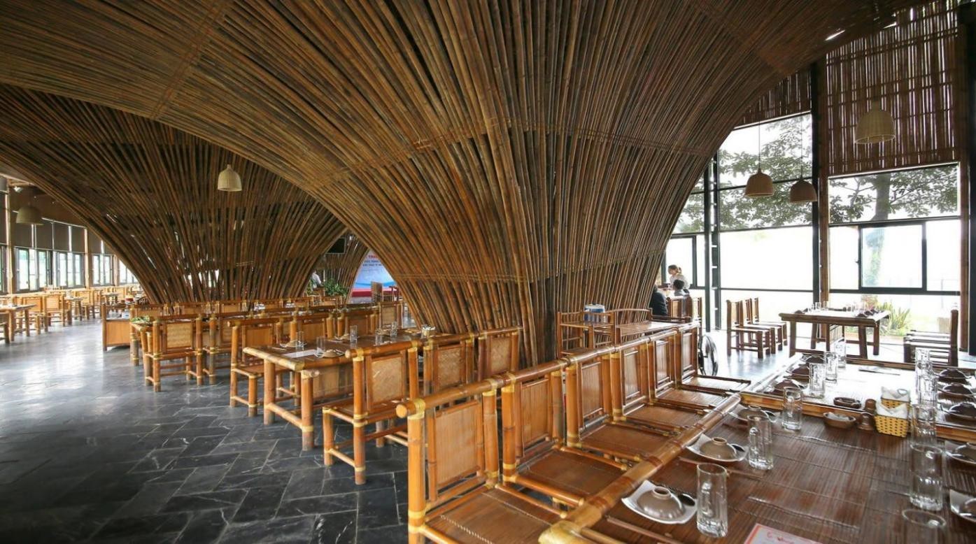 (Mô hình nhà hàng được xây dựng chủ yếu từ chất liệu lấy từ tự nhiên đem lại cảm giác gần gũi và ấm cúng)